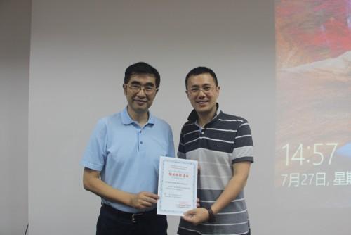 (湖南省政协副主席、ITSS分委会主任委员张大方先生颁发“WG8国际标准组组长单位证书”)