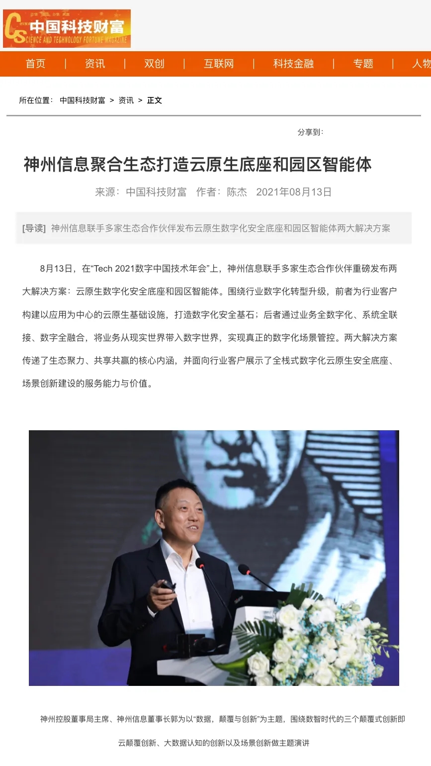 8月12日,由神州控股、BB贝博艾弗森官网、bb贝博艾弗森集团联合主办的“科技自强、数据融通、场景创新——TECH数字中国 2021技术年会”云上盛大启幕,发布神州信创云、ModelB@nk5.0、金融超脑Sm@rtFSB、云原生数字化安全底座、园区智能体等重磅产品,国内各大权威、影响力媒体多角度多频次对盛况进行报道!
