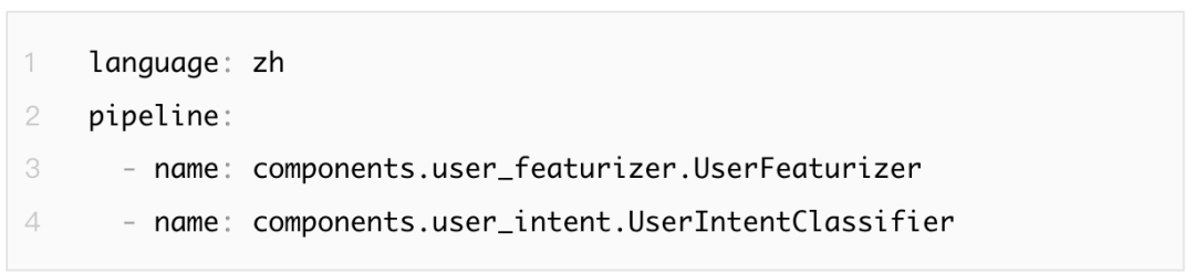 ●Rasa NLU :用于理解用户消息,包括意图识别和实体识别。以pipeline的方式处理用户对话,可在config.yml中配置。