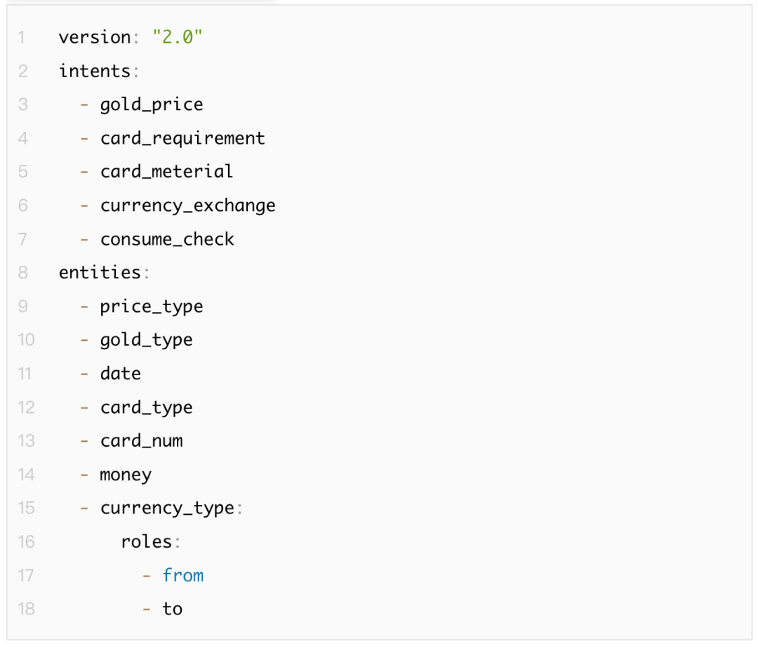 注意:样例仅配置了NLU部分,训练时使用rasa train nlu,测试时使用rasa shell nlu。