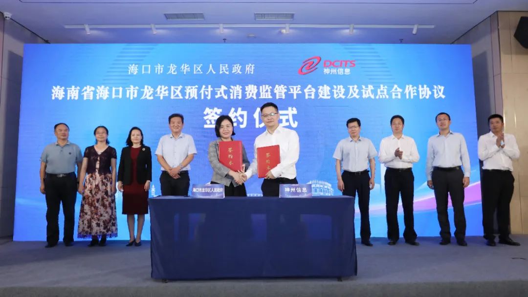 在海南省互联网信息办公室副主任王岩,海南省工业和信息化厅总工程师黄家林,海南银行总行党委委员、副行长邹燕玲,海口市龙华区人民政府区长王晓龙,BB贝博艾弗森官网副总裁马洪杰,海南省市场监督管理局二级调研员郑文芳,海口市科工信局副局长景长军,BB贝博艾弗森官网 集团战略发展部副总经理张勇华等多位领导的共同见证下,龙华区副区长龙靖滨、神州方圆总经理陈宏鸿就海南省海口市龙华区预付式消费监管平台建设及预付式消费服务试点正式签署了协议。合作主要围绕龙华区“预付式消费监管平台”的建设、日常管理和运行维护以及全区预付式消费试点工作展开。政企合力,认真贯彻试点方案,切实走出“区块链+数字人民币+预付式消费场景应用”新思路。随后还举行了海南省海口市龙华区预付式消费试点启动暨预付式消费监管和服务平台发布仪式。