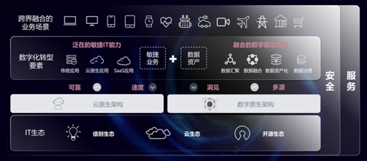 所以数字化一方面要把业务数据化,同时要把数据业务化。企业发展最重要的是两个内容,一方面是不断地累积数据资产,另外一方面是利用这些数据资产去实现业务。今天实现业务最重要的技术手段是云,云技术使得能够快速地实现业务编排,比如类似低代码、自动开发、应用服务器的发明等。